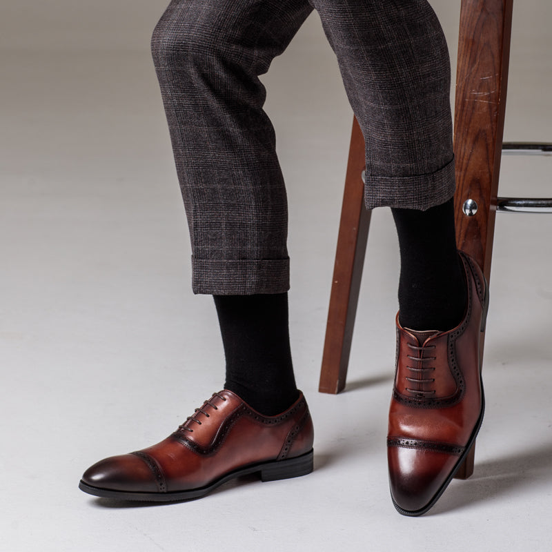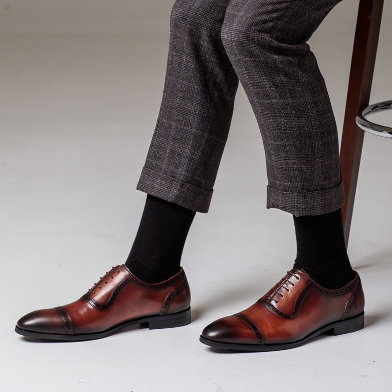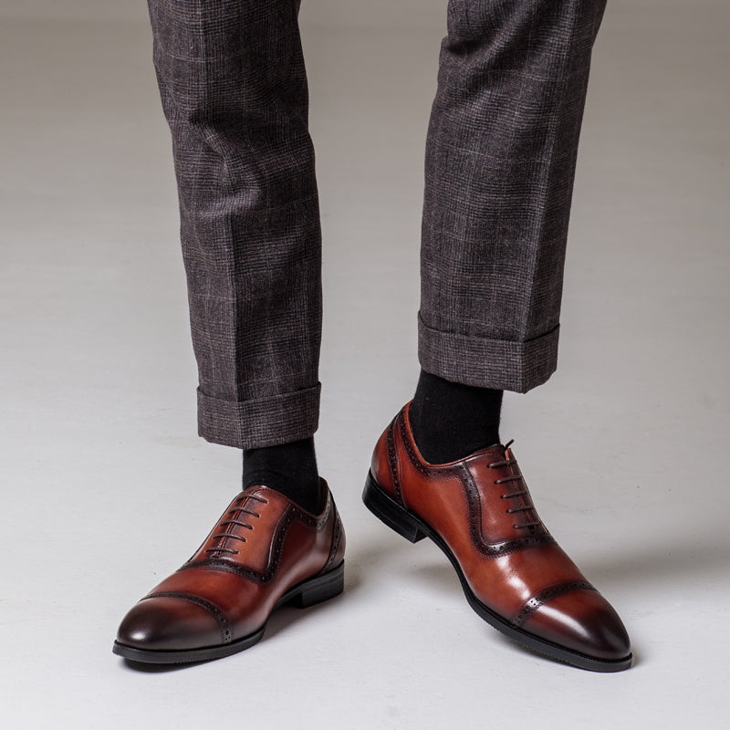 This laced up oxford with light broguing toe-cap design is supremely comfortable and has a elegant look, They'll be the ideal bridge to all smart-casual and formal looks.
