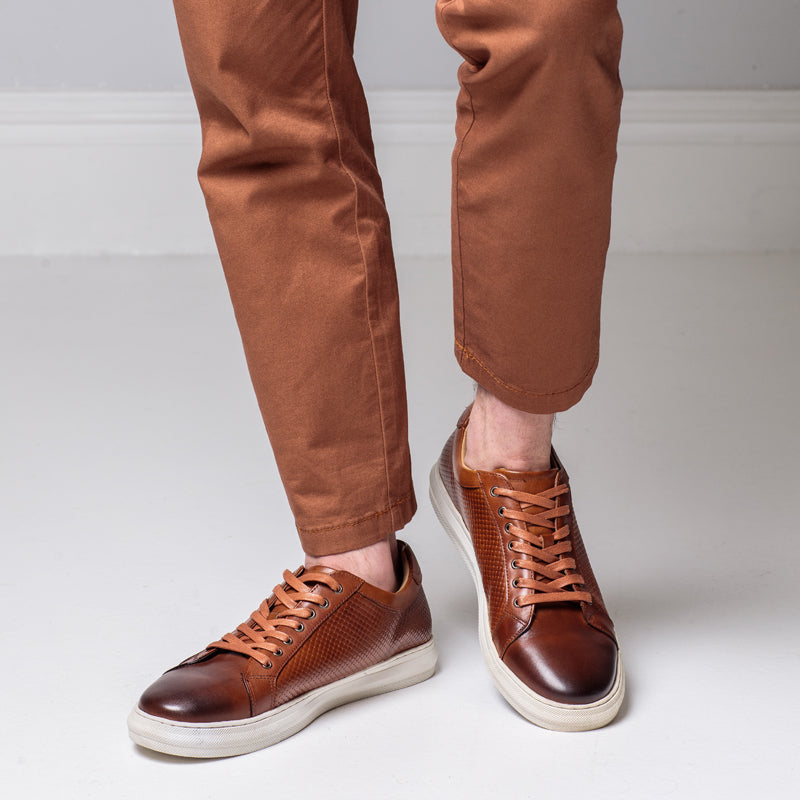 A contemporary take on classic trainer, this shoe will complete your wardrobe. Carefully handcrafted leather upper with anti skid rubber sole , this classic style will partner perfectly with rolled up chinos and relaxed chambray shirts.