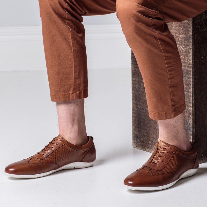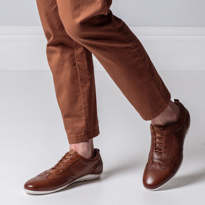 A contemporary take on classic trainer, this shoe will complete your wardrobe. Carefully handcrafted leather upper with anti skid  Pvc/rubber sole , this classic style will partner perfectly with rolled up chinos and relaxed chambray shirts.