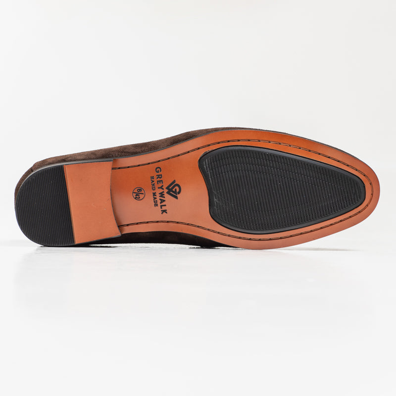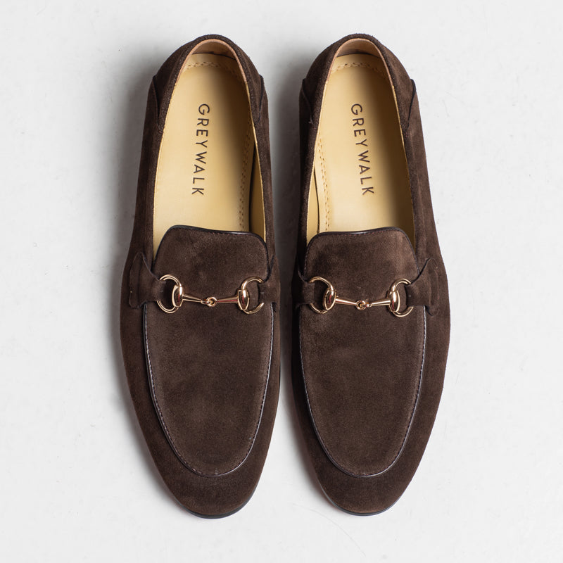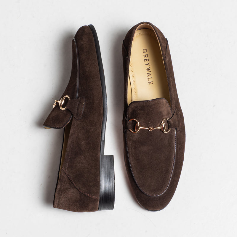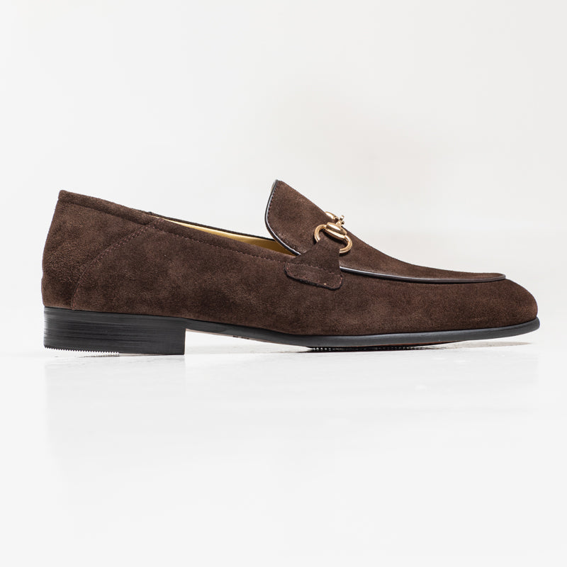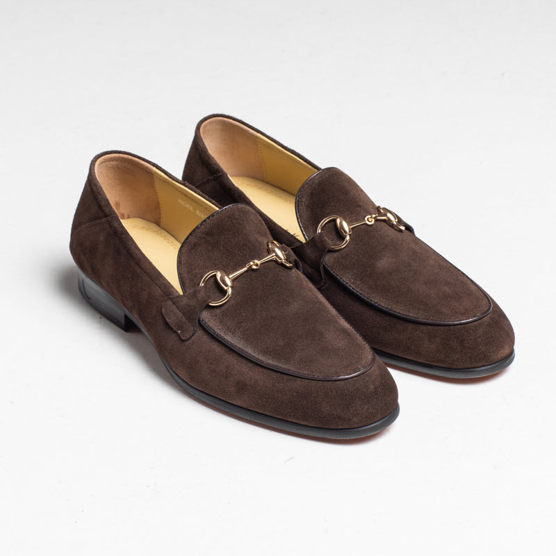 A classic horsebit loafer crafted in rich coffee suede. Noel features a clean almond-toe shape and a polished gold-tone bit detail that gives it a refined, timeless look. A versatile style that works well with tailoring or smart-casual outfits.