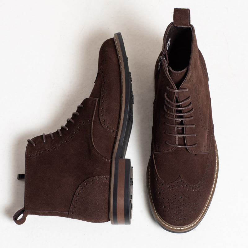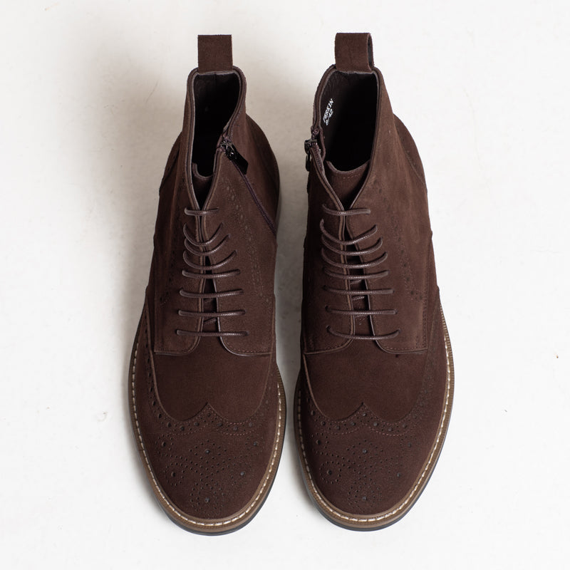 Perkin Laced up Suede Ankle Boot - Coffee