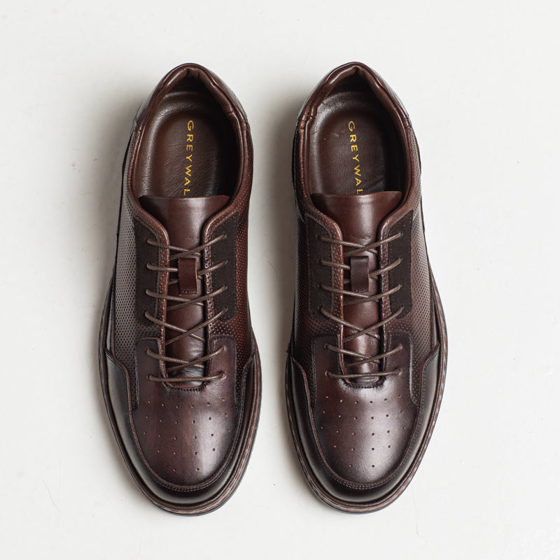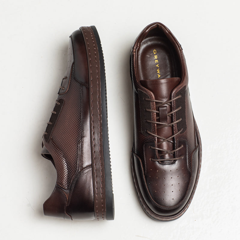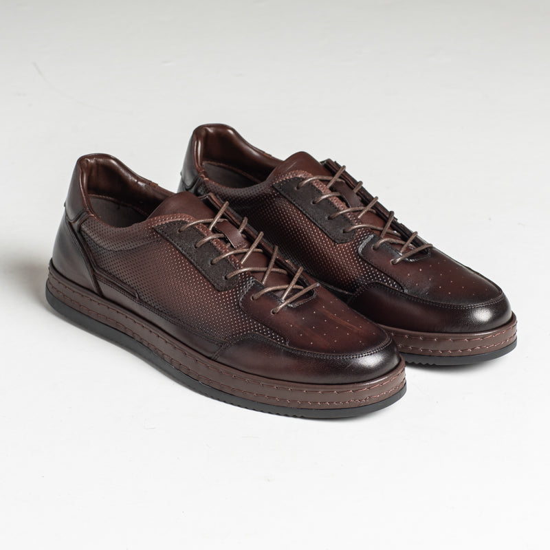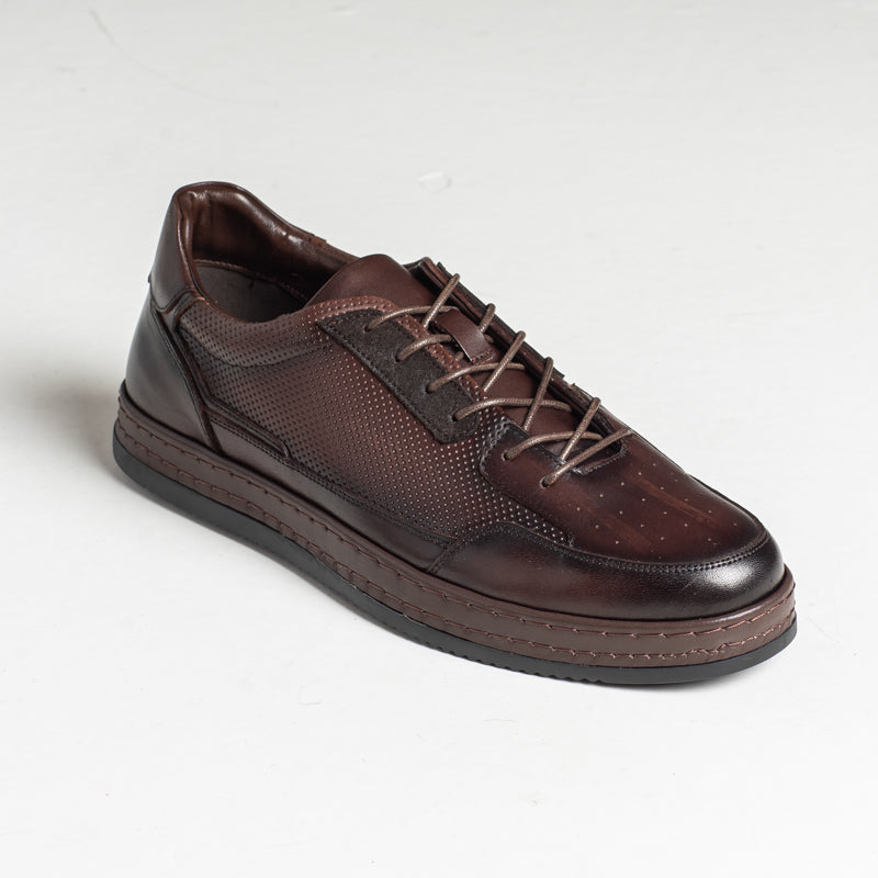 Discover the perfect fusion of craftsmanship and contemporary style with this handmade men’s brown casual sneaker, crafted from the finest genuine calf leather. Designed for the modern gentleman, this shoe features a sleek perforated texture that enhances breathability while adding a sophisticated edge.