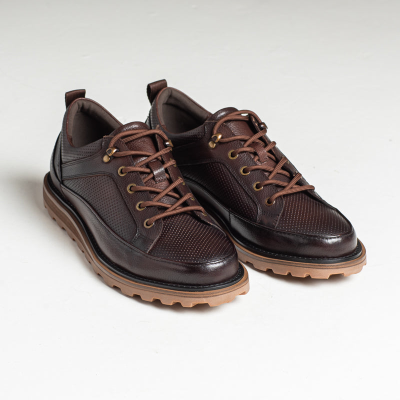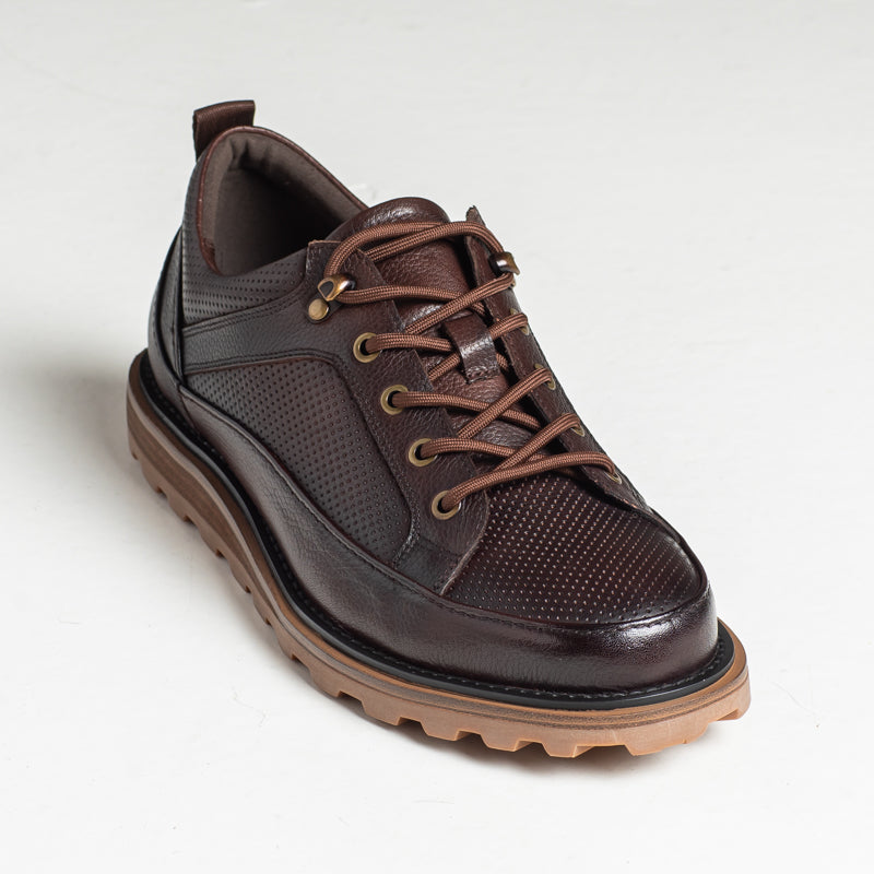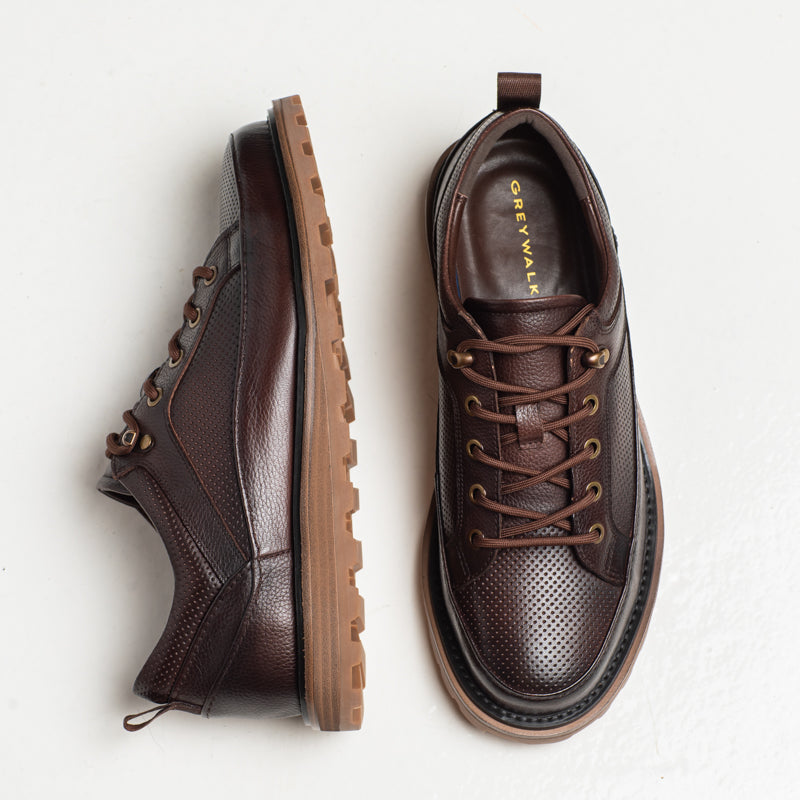 Step up your everyday style with this premium men’s brown leather casual derby shoe. Expertly crafted from high-quality genuine leather. The upper features a perforated texture for enhanced breathability and a rich dark brown finish that pairs effortlessly with both casual and semi-formal outfits.