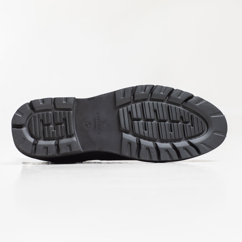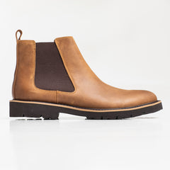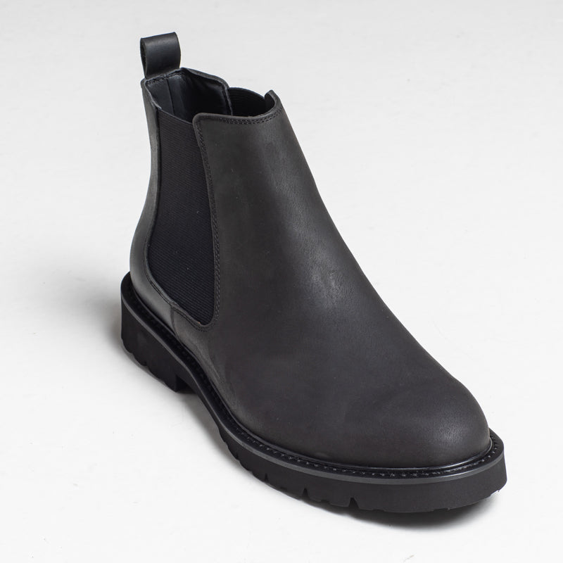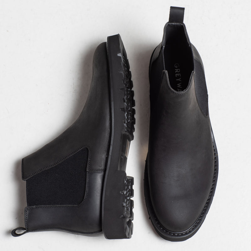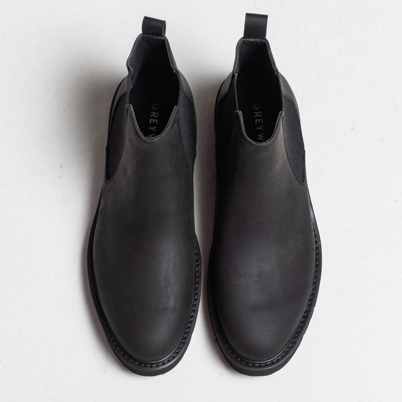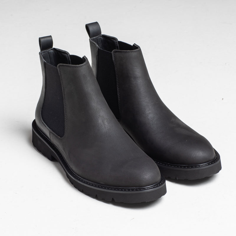 Crafted in rich black leather with a matte finish. Designed with elastic side panels for an easy slip-on fit and a rugged rubber lug sole for confident grip in all conditions. A versatile boot built for everyday wear, balancing sharp styling with durable construction.