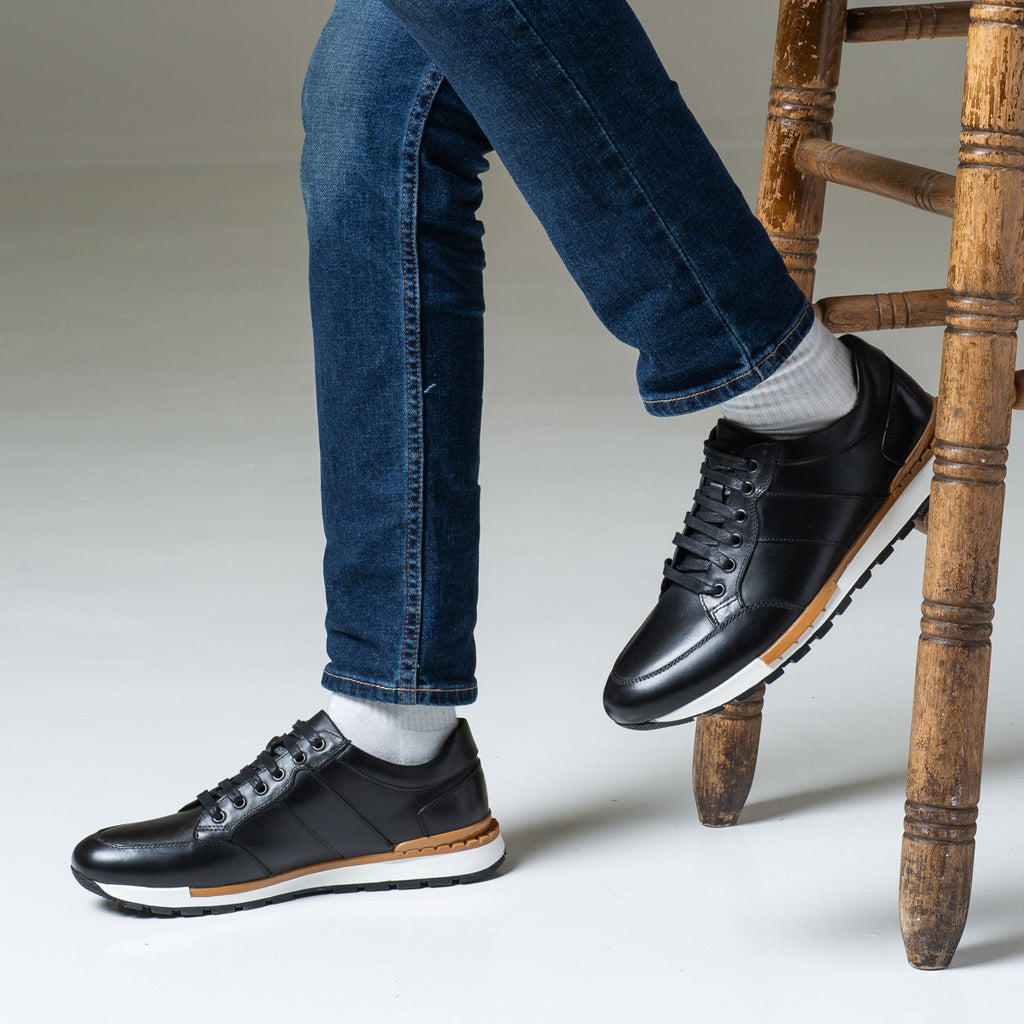 A contemporary take on classic trainer, this shoe will complete your wardrobe. Carefully handcrafted leather upper with anti skid Pvc/rubber sole , this classic style will partner perfectly with rolled up chinos and relaxed chambray shirts.