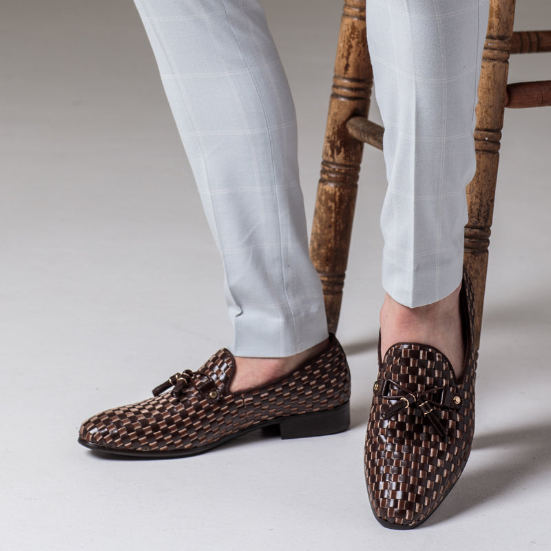 Hand weaved leather upper slip-on loafer , this shoe will complete your wardrobe. Carefully handcrafted with anti skid  rubber sole , this classic style will partner with  elegant dressing and suitable for any occasion.